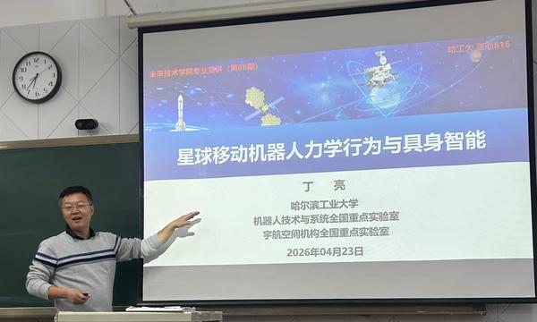 丁亮教授以“星球移动机器人力学行为与具身智能”为题,生动地讲述了学院的科研前沿——星球移动探测机器人、重载多足机器人、具身智能及操作系统,并向同学们展示了相关领域未来发展趋势与广阔的前景,激起了同学们对机器人、仿生科学、具身智能相关领域的兴趣与热情,为同学们专业选择提供有力参考。